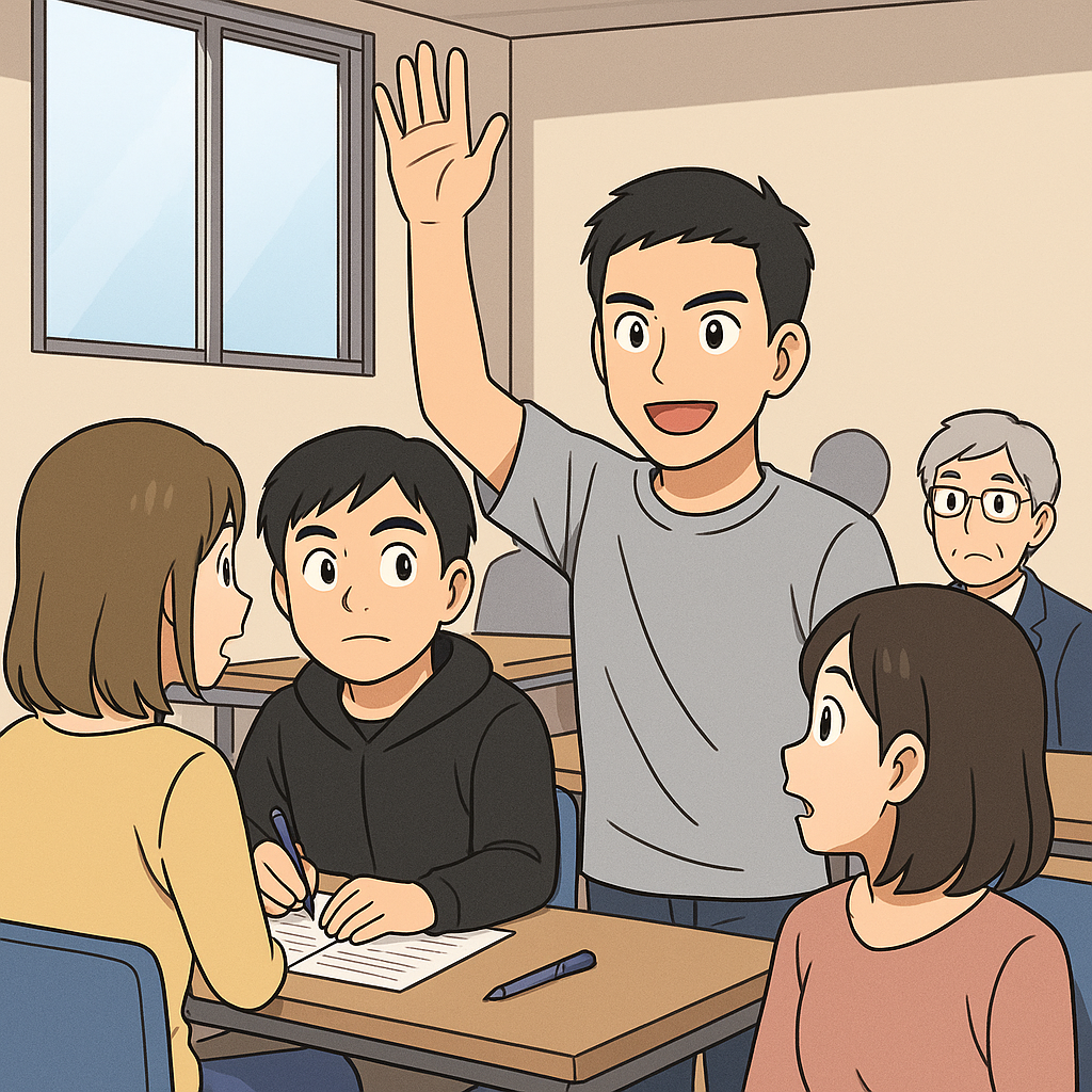 教室に入ると、幅広い年齢や背景の人たちが机を並べていました。スーツ姿の会社員、私服の学生風、主婦らしき人までいる中で、特に印象に残ったのは白髪混じりの紳士でした。自己紹介で「東京大学卒なんですがね」と笑ったとき、場が少しどよめきました。なぜそのような肩書きを持つ人がここにいるのか。そして「自分のように何も持たない人間が混じっていていいのか」という劣等感も込み上げました。しかし同時に「経歴に関係なく挑戦している人がいる」という事実が、不思議と励みにもなりました。